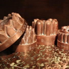 Quirinal et Royal Provenance présentent, jusqu’au 14 janvier, une fantasque collection d'ustensiles de cuisine en cuivre, ayant tous servis dans les cuisines de palais royaux (Tuileries, Fonatinebleau, Amboise, etc.), au XIXe siècle.